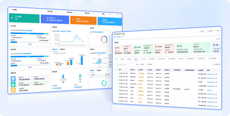 三.材财务数据集中管理:精准管控经营全局 数据实时汇总,总部看全局:各项目的收支明细、付款进度、账户余额,自动同步到系统,总部打开 “经营看板”,就能实时掌握数十个在建项目的财务状态,无需逐项目催报数据