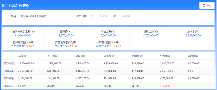 2. 成本管控更精细:支持二级预算,签约预警、成本预警及五算对比,提升成本预测准确性。