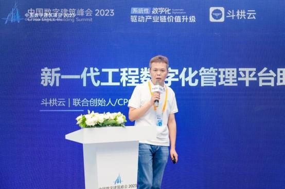 斗栱云首席产品官邓宇明在峰会发表主题演讲《新一代工程数字化管理平台、助力建企高质量发展》,分享建筑行业新形势下,工程企业如何多、快、好、省的实现数字化转型。